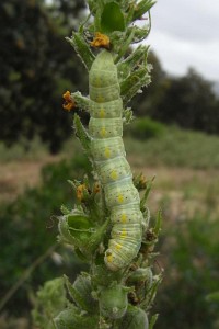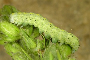Treitschke (1826) meldet in seiner Erstbeschreibung Raupenfunde an der Kleinblütigen Königskerze (Verbascum thapsus). Diese Pflanze kann mit obigen Bildern auch bestätigt werden. Hermann Falkenhahn fand Raupen in Nordmazedonien an Verbascum longifolium[https://www.lepiforum.de/2_forum_2017.pl?page=1;md=read;id=38967]. Es werden auch andere Arten der Gattung genutzt - in aller Regel wurden sie aber nicht bestimmt.