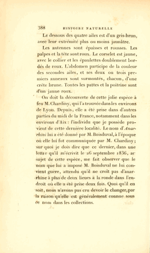 - Erstbeschreibung: Duponchel, P.-A.-J. (1836-[1842]): Histoire naturelle des lépidoptères ou papillons de France. Supplément. Tome troisième: 1-651, 4 unpaginierte Seiten (Avis de l'auteur), pl. I-L. Paris (Méquignon-Marvis).