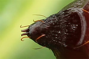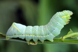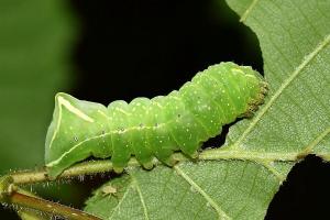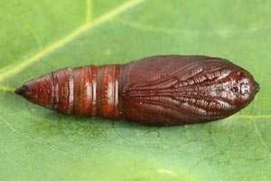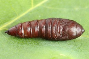 5: verpuppungsreife Raupe beim Einspinnen, Daten wie Bild 4 (Foto: Renate Ridley)Forum