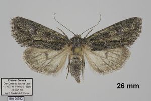 Die drei Typusexemplare dieser Art wurden 2001 und 2003 in den höheren Lagen von Korsika gesammelt und entsprechend dem damaligen Kenntnisstand als "Cryphia simulatricula" etikettiert. Fibiger et al. (2009) unterschieden Cryphia simulatricula und deren im Schnitt etwas kleinere Schwesterart Cryphia lusitanica, wobei letztere Art im Text nur für Portugal und Spanien angeführt wurde, während erstere für Südost-Spanien, Südostfrankreich, die Südschweiz und Norditalien angegeben wurde.