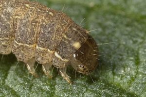 1: Italien, Südtirol, Bozen-Rentsch, 265 m, Raupe an Rosa canina 8. April 2015 (leg., cult. & Foto: Werner Pichler), conf. Raupe Thomas FähnrichForum