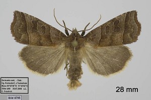 5: ♂, Deutschland, Baden-Württemberg, 78176 Blumberg, Ortsrandlage, Südhang, in Waldnähe (Buchen-Mischwald, Waldrand mit anschließendem Trespen-Halbtrockenrasen auf Kalk), 720 m, 29. Juli 2011, am Licht (leg., det. & Foto: Hans-Peter Deuring)