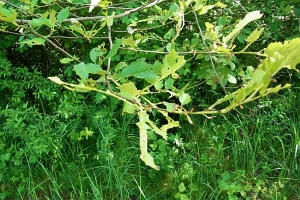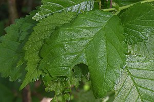 1: Raupenversteck an Feldulme (Ulmus minor): Deutschland, Sachsen, Leipzig, Auwald, 3. Mai 2007 (Freilandfoto: Heidrun Melzer)Forum
