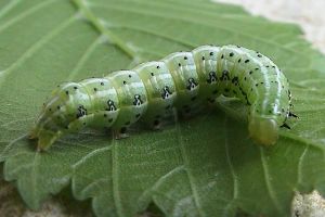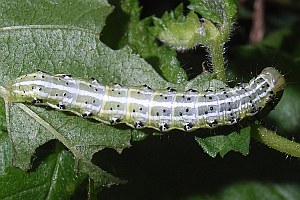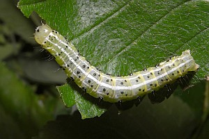 1: an einem Waldrand in der Trockenaue saß die Raupe offen an einem Ulmenblatt (Ulmus minor) fressend: Deutschland, Baden-Württemberg, Südbaden, Rheinweiler, 230 m, 28. Mai 2013 (fot.: Florian Nantscheff)Forum