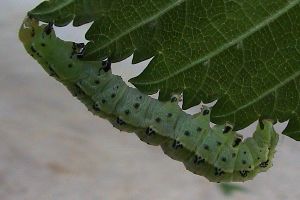 2: an Feldulme (Ulmus minor). Bei Störung sondert die Raupe ein gelbliches Sekret ab: Deutschland, Baden-Württemberg, Südbaden, Rheinweiler, 230 m, 28. Mai 2013 (fot.: Florian Nantscheff)Forum