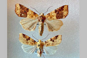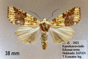 1-2: ♂, Japan, Hokkaido, Kikonai town, Kamekawa-rindo, 29. September 2021 (Foto: Markus Rachinger), leg. T. Kumatsu; und Größenvergleich mit Cirrhia icteritiaForum