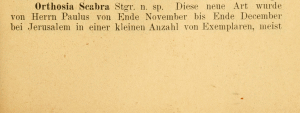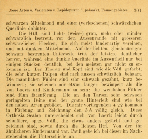 - Erstbeschreibung: Staudinger, O. (1892): Neue Arten und Varietäten von Lepidopteren des paläarktischen Faunengebiets. — Deutsche entomologische Zeitschrift Iris 4 (2): 224-339, pl. III-IV.