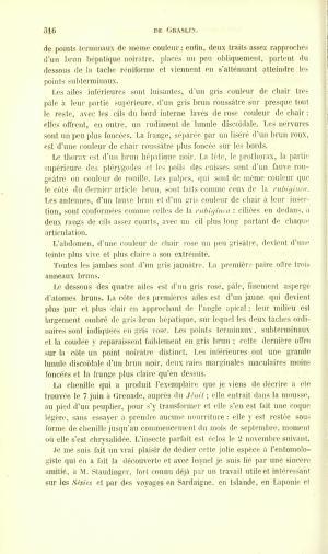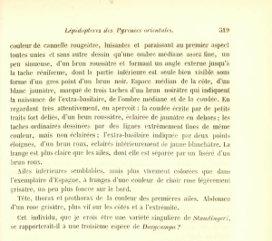 - Erstbeschreibung: De Graslin, A. (1863): Notice sur deux explorations entomologiques faites dans les Pyrénées orientales en 1847 et en 1857 accompagnée de la description de quelques espèces inédites de lépidoptères de la France et de l'Espagne. — Annales de la Société entomologique de France, Quatrième série 3: 297-372, pl. 8. Paris.
