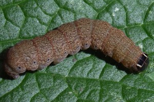 2: Jungraupe, Daten wie Bild 1 (manipuliertes Freilandfoto: Heidrun Melzer), leg., cult. & det. Heidrun Melzer