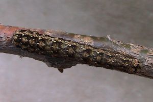 Die mit ganz großem Abstand wichtigsten Eiablagepflanzen sind Eichen - sicher noch weit mehr Arten als die für Baden-Württemberg belegten Stiel-, Trauben- und Rot-Eichen. Die jungen Raupen bohren sich nach der Überwinterung der Eier noch vor dem Blattaustrieb in Knospen der Eichen hinein und ernähren sich auch in den folgenden Larvalstadien noch hauptsächlich von Knospen, in die sie große Löcher hineinbohren und sie dabei fast aushöhlen. In den späteren Larvenstadien fressen die Raupen auch junge Blätter - tagsüber verbergen sie sich - bis zum Boden hinab - in Stammritzen der Bäume.