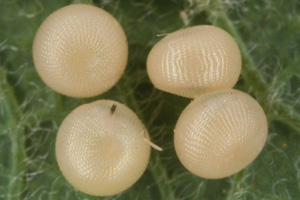 2: Gelege in trockenem Grashalm, Deutschland, Hessen, Alsbach, Erlenbruch-Wald nebst Schilf, 31. Oktober 2020 (Foto: Erik Opper, det. durch Beobachtung der Eiablage)Forum