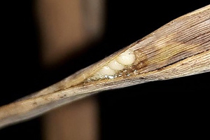 1-3: Österreich, Vorarlberg, Götzis-Altach, im unteren Stengelbereich von Schilf (Phragmites communis) 6. Mai 2005 (Fotos: Christian Siegel), det. Herbert Beck nach den Raupenfotos