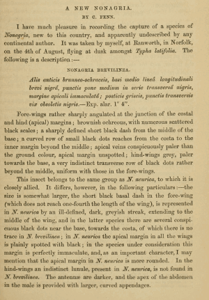 - Erstbeschreibung: Fenn, C. (1864): A new Nonagria. — The Entomologist's Monthly Magazine 1: 107. London (John van Voorst).