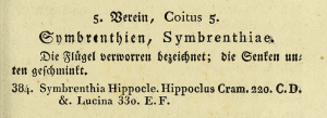 - Erstbeschreibung: Hübner, J. [1816-1826] („1816“): Verzeichniß bekannter Schmettlinge [sic]: 1-431, 1-72. Augsburg.