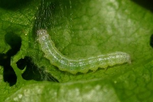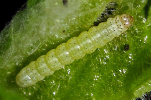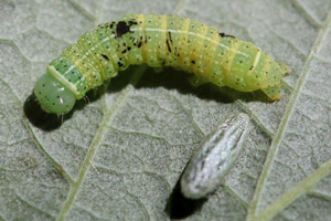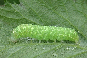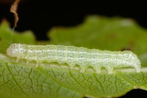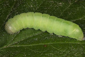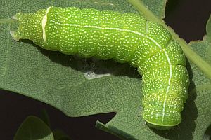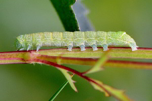 Es gibt viele grüne Eulenraupen, besonders häufig und einander ähnlich sind die folgenden:
