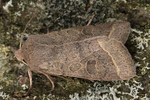 - Amphipyra tragopoginis: keine weißliche Sprenkelung und deutliche Nebenrückenlinie.