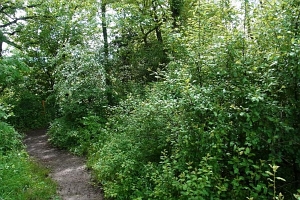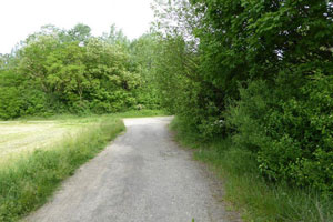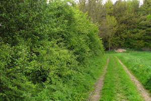 3: Larvalhabitat, Deutschland, Niedersachsen, Umgebung Rodenberg, 130 m, von Hecke gesäumter Feldweg nahe Waldrand, 9. Mai 2017 (Foto: Tina Schulz)