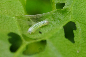 1-3: junge Raupe an Blattunterseite, unter Gespinstnetz, Deutschland, Niedersachsen, Region Hannover, Hannover-Döhren, 60 m, Leineaue, an Acer platanoides (Spitzahorn), 11. Mai 2017 (det. durch Zucht & Freilandfotos: Tina Schulz)
