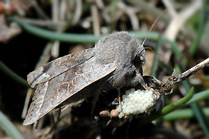 1-2: ♀ bei vollem Sonnenschein (ca. 16 Uhr) bei der Eiablage an einem vertrockneten Samenstand von Plantago media: Schweiz, Bern, Plagne, 830 m, 2. April 2010 (Freilandfotos: Rudolf Bryner), leg. & det. Markus Fluri & Rudolf BrynerForum