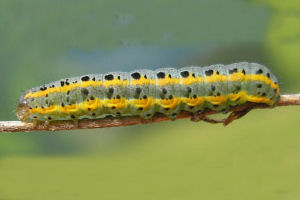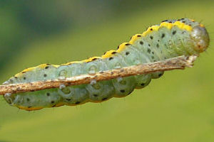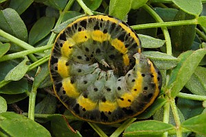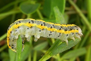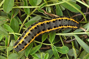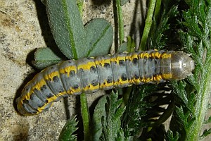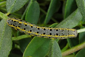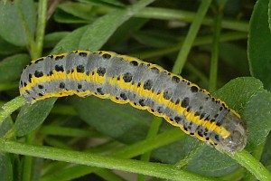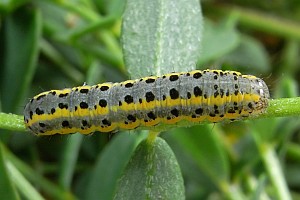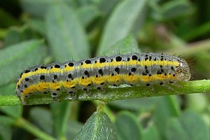 10-11: Deutschland, Thüringen, Kyffhäuser, Umgeb. Steinthaleben, Raupenfund an Hufeisenklee (Hippocrepis comosa) 9. August 2014, e.l. 27. Mai 2015 (leg., cult., det. & Fotos: Heidrun Melzer)