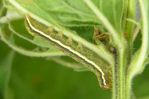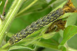Zur Unterscheidung der Raupe von Lacanobia oleracea: Der helle Seitenstreifen ist dicker und schärfer abgegrenzt und auch nicht gelb, sondern eher weiß (mit +-leichtem Gelbton). Grüne Raupenformen gibt es allerdings auch bei Lacanobia splendens. Text: Egbert Friedrich im [Forum].