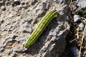 1: Raupe sitzt auf Pappeltrieb in einer verbuschten Waldlichtung neben einem Bach, Deutschland, Baden-Württemberg, Südschwarzwald, Fahl, 840 m, 8. September 2015 (Foto: Florian Nantscheff)Forum