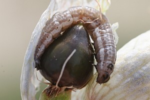 1: Samenkapsel von Silene vulgaris mit darin versteckter Raupe: Deutschland, Thüringen, Jena-Göschwitz, Wiese am Waldrand, 15. Juli 2007 (leg., cult., det. & Freilandfoto: Heidrun Melzer)Forum