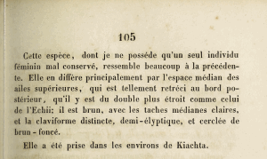 - Erstbeschreibung: Eversmann, [E.] (1856): Les Noctuélites de la Russie. — Bulletin de la Société impériale des naturalistes de Moscou 28 (3): 129-203. Moscou (Imprimerie de l'Université Impériale).