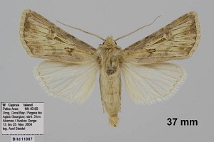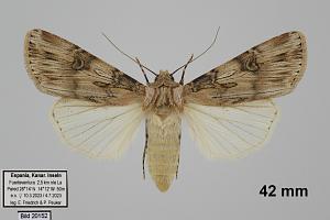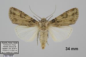 13-15: ♂, Ägypten, Daten siehe Etikett (fot.: Michel Kettner), coll. ZSM (dieser Falter war bis zum 17. Februar 2025 unter Agrotis haifae einsortiert. Bestimmungskorrektur: Arno Beidts, conf. J. Yela).