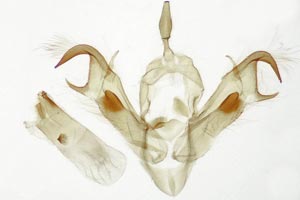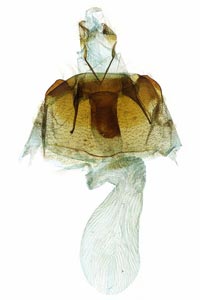 1: Genitalpräparat eines im Forum angefragten ♀, Österreich, Steiermark, Graz, St. Peter, ca. 380 m, Garten, Mischwaldrand, am Licht, 19. Juli 2017 (präp. & Foto: Horst Pichler), det. Egbert FriedrichForum