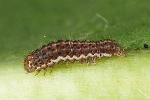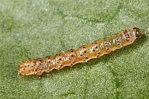 1-2: Jungraupe nach der Überwinterung, Deutschland, Brandenburg, Landkreis Dahme-Spreewald, ehemaliges Militärgelände bei Krausnick, Raupe am 26. März 2010 nachts geleuchtet (Studiofoto am 16. Mai 2010: Stefan Ratering), leg. & det. Jörg Gelbrecht & Stefan RateringForum