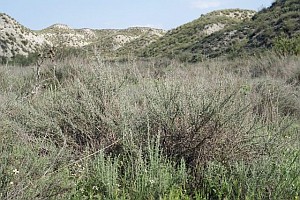 1: Raupenfundort mit Strauchmelden (Atriplex spec.): Spanien, Granada, Baza, 800 m, 28. April 2011 (Foto: Helmut Deutsch)