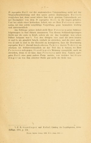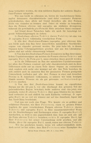 Mikkola & Ståhls (2008) vermerken: "Note: Chetverikov (1908: 1) gave a nomen novum D. sibiricus to his own D. laricis Chetverikov, 1903 because N. J. Kusnetsov had informed him that Hübner (1790, II (2): 48) had already described a taxon of Dendrolimus with the name laricis. However, the illustration of Phalaena Bombyx laricis Hübner is certainly not a Dendrolimus (possibly Taragama sp.; less pectinated antennae than in Dendrolimus, and longer abdomen, different transversal lines and discal spot). Petersen (1905) considered D. laricis Chetverikov a synonym of D. segregatus (Butler), possibly because from the Romanov collection in St. Petersburg he had been sent wrongly determined voucher material from the Far East (seemingly D. sibiricus under the name D. segregatus)."