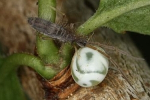 1-2: Deutschland, Bayern, Umgebung Rosenheim, 446 m, Lichtfang Sommer 2005, 8. Juni 2006 (Studiofoto: Rudolf J. Haller), Bild 1 Kokon, Bild 2 drei PuppenForum