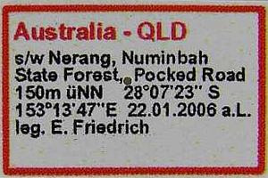 - Original description: Donovan, E. (1805): An Epitome of the Natural History of the Insects of New Holland, New Zealand, New Guinea, Otaheite, and other Islands in the Indian, Southern, and Pacific Oceans: Including the Figures and Descriptions of One Hundred and Fifty-Three Species of the more Splendid, Beautiful, and Interesting Insects, Hitherto Discovered in those Countries, and which for the most Part have not Appeared in the Works of any Preceding Author. The Figures are Correctly Delineated from Specimens of the Insects; and with the Descriptions are Arranged According to the Linnæan System, with Reference to the Writings of Fabricius and other Entomologists: I-IV; pl. [1]-[41]; unpaginated text pages. London.