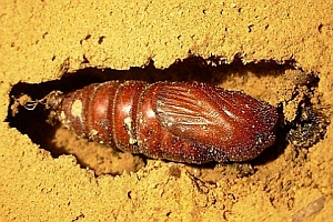 1: Bulgarien, Zl. Pjasacsi, Sunny Beach, leg. & det. Risto Havelinen (Finnland), Eiablage 6-9. Oktober 2005, Raupenschlupf 29. März bis 7. April 2006, Verpuppung ab 20. Mai 2006, 9. Mai 2006 (Foto: Gerd Krautberger), cult. Gerd KrautbergerForum
