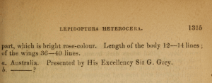 - Erstbeschreibung: Walker, F. (1858): List of the Specimens of Lepidopterous Insects in the Collection of the British Museum 14: 1237-1519. [Digitalisat auf archive.org]