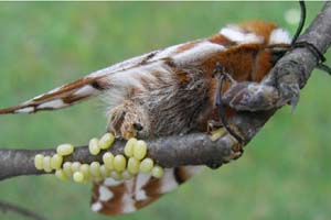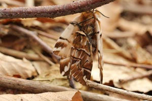 Curtis (1823-1840) liefert neben einer ausführlichen Beschreibung auch eine längere Liste an Raupennahrungspflanzen, die aber nicht auf ihn selbst zurückgeht: "A very excellent history of this insect is given by Mr. J. P. Neale in the Entomological Transactions, where he says, "The larva was beat off the Birch in Darent Wood, near Dartford in Kent, June 6, 1805. This larva was placed in a cage, and continued to feed until July the 8th ; it then began to spin amongst the dead leaves, mixing the earth and leaves in a web, like Noctua Sponsa and N. Nupta. The perfect insect appeared the 20th of March following." Several have been bred in February, and a female as early as January 19th; and one of this sex was taken the 15th of April, on an Alder stump in Coomb Wood. Males have remained in pupae two years, one of which was bred by Mr. Standish in November." Und dann: "Godart says the caterpillars live in societies, containing from twelve to fifteen individuals, during the first six weeks, and always raise the anterior portion of the body in repose, like those of the Sphingidee, which they also resemble in having a sort of tail and oblique pale stripes on the sides. They feed on the Birch, Alder, Nut, Beech, and Lime, and are full-grown the beginning of July."