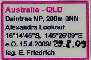 1: ♂, Australia, Queensland, Atherton-area, Danbulla State Forest, near Lake Euramoo, 730 m, 12. April 2009 lux; (det. & phot.: Egbert Friedrich)