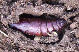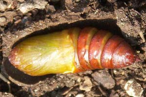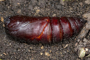 4: ausgehärtete Puppe, Frankreich, Côte d´Azur, Var, Flassans, 300 m, Zucht vom 8. Juni 2006 bis 27. Juli 2006, Foto vom 27. Juli 2006 (det., cult. & Studiofoto: Rudolf Haller)Forum