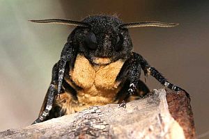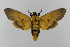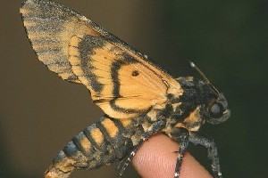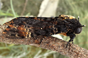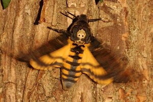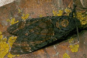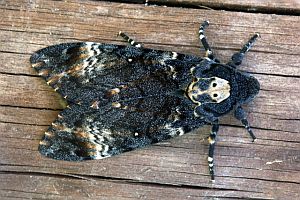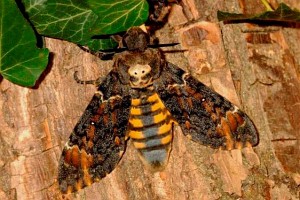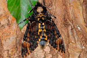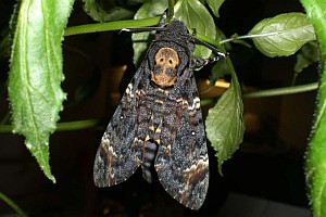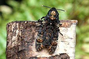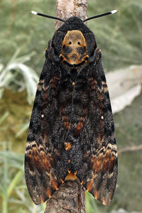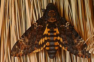 1: Funddaten unbekannt (Foto: Walter Schön). Der Trivialname „Totenkopf“ bezieht sich auf die markante Zeichnung auf dem Falterrücken.