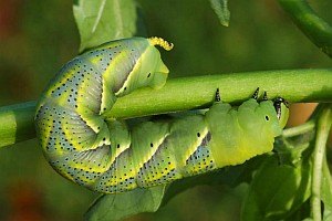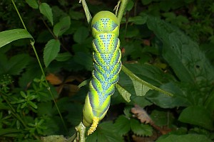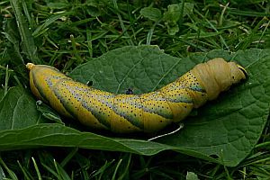 10-11: verpuppungsreif, Deutschland, Thüringen, Reichenbach b. Hermsdorf, 320 m, Hausgarten, an Engelstrompete, 24. Juli 2007 (Fotos: Helga Schöps), det. Helga SchöpsForum