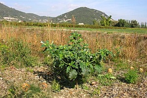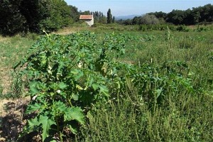 1: im Vordergrund die Raupenfundpflanze Datura stramonium: Frankreich, Ardèche, Verviers, 2. Oktober 2007 (Foto: Allan Liosi), det. Allan LiosiForum
