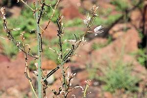 Wenn es in der Wüste geregnet hat, werden kurzzeitig als Larvalhabitat geeignete Stellen von den Linienschwärmer-Weibchen auf ihren Dispersionsflügen entdeckt und mit Eiern belegt – oft sehr massiv. Aus Kleinasien, Arabien und Nordafrika gibt es Berichte von Zehntausenden von Raupen, die sich gleichzeitig auf engem Raum entwickeln, wenn die Bedingungen geeignet sind.