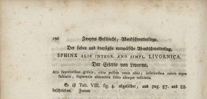 - Harbich, H. (1980): Ergebnisse einer Hybridzucht zwischen Hyles lineata (Fabricius, 1775) und Hyles livornica (Esper, 1779) - I. Teil (Lep. Sphingidae. — Atalanta, 11: 5-11.