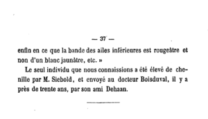 - Erstbeschreibung: De L'Orza, P. (1869): Les lépidoptères japonais à la grande exposition internationale De 1867. Catalogue raisonné des espèces qui y ont figuré Avec la Description des Espèces nouvelles: 1-49. Rennes (Typographie Oberthur & Fils).