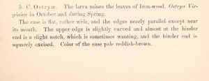 Die Art wurde nach dem Raupensack beschrieben. Nach dem ICZN Artikel 1.3.6. sind Namen ungültig, die nach 1930 für Lebensspuren lebender Tiere aufgestellt wurden. Im Umkehrschluss ist Coleophora ostryae ein gültiger Name.