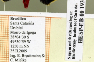 1-3: ♀, Daten siehe Etiketten (fot.: Ernst Brockmann, Fotos bearbeitet: Michel Kettner), coll. Departamento de Zoologia, Universidade Federal do Paraná, Curitiba, Paraná, Brazil.