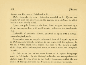 - Erstbeschreibung: Edwards, W. H. (1864): Description of certain species of DIURNAL LEPIDOPTERA found within the limits of the United States and British North America. No. 3. — Proceedings of the Entomological Society of Philadelphia 2 (4): 501-507.