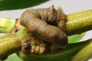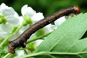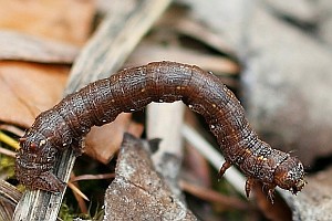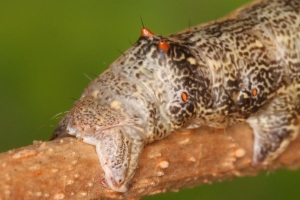 2: halberwachsene Raupe, Daten siehe Raupe 1, 4. Mai 2006 (Studiofoto: Walter Schön)